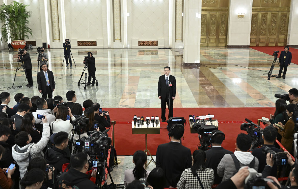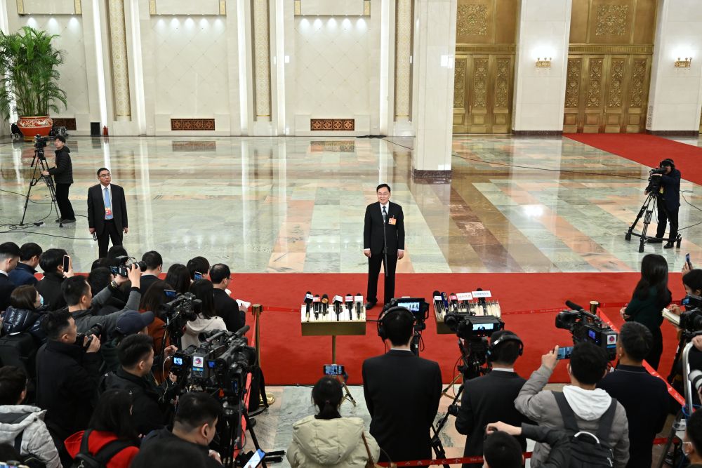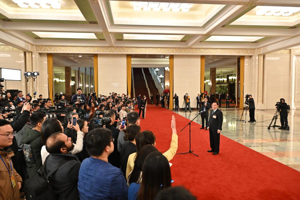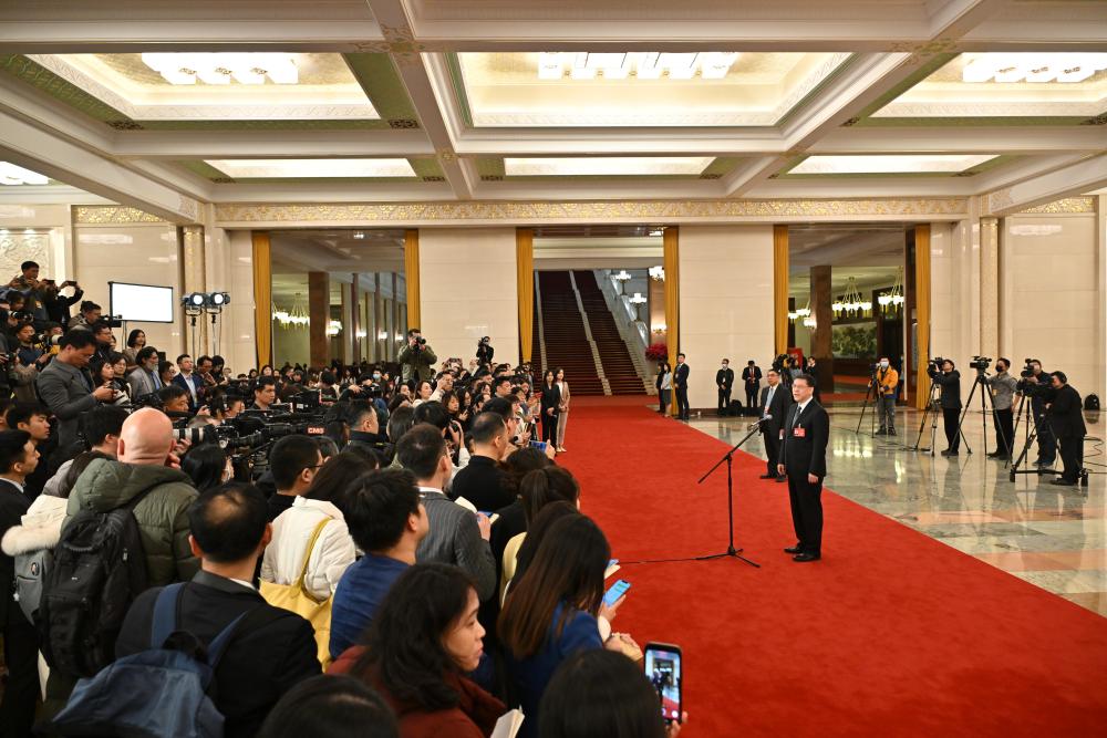 3月5日,第十四屆全國人民代表大會第二次會議首場“部長通道”集中采訪活動在北京人民大會堂舉行。