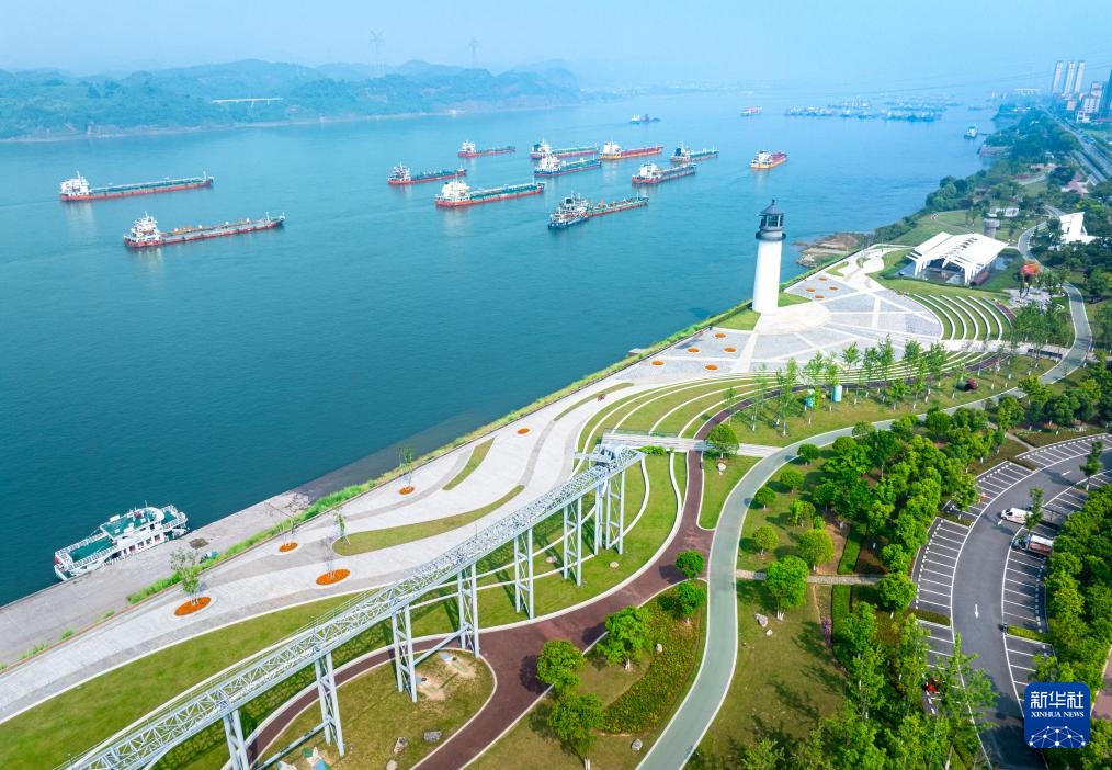 2024年5月24日,市民在湖北宜昌市濱江公園燈塔廣場游玩。該廣場是在實施岸線復綠等綜合措施后,由老舊碼頭改造而成。
