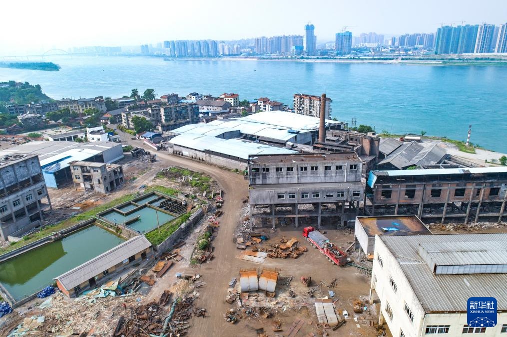 這是湖北宜昌田田化工有限責任公司拆除現場(2018年4月30日攝,無人機照片)。
