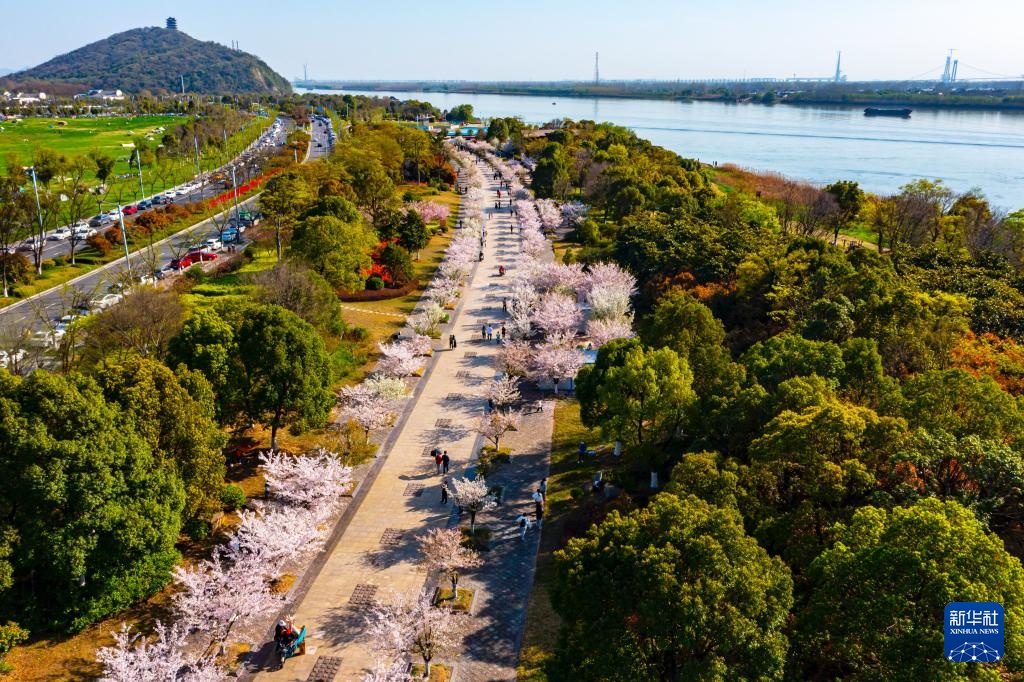 這是2024年3月30日拍攝的位于長江邊的安徽省馬鞍山市濱江文化公園(無人機照片)。