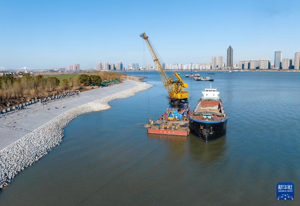 這是2024年1月23日在安徽蕪湖市鳩江區拍攝的長江蕪湖河段整治工程建設工地現場(無人機照片)。