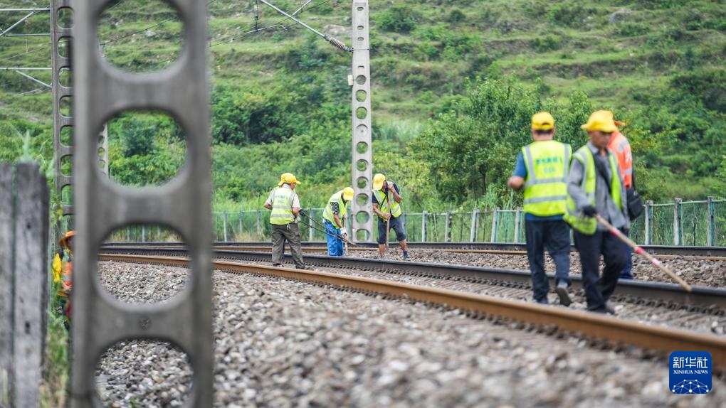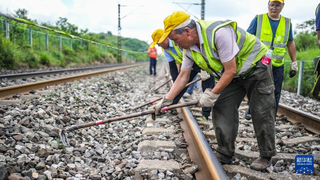 8月6日,工人在滬昆鐵路貴州段整理線路。