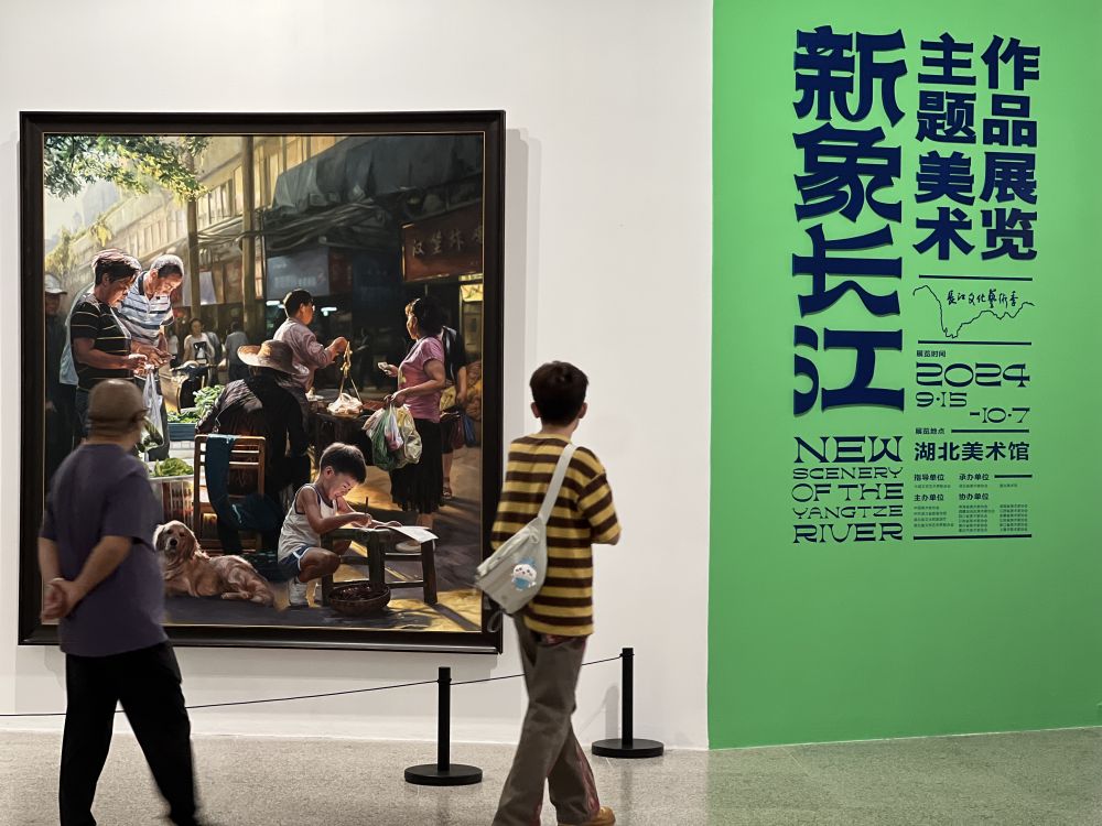 觀眾在參觀“新象長江”主題美術(shù)作品展覽。新華社記者喻珮 攝