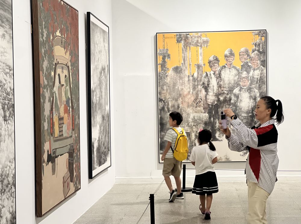 記者在湖北美術(shù)館展廳看到,作品不僅聚焦長江流域的自然景觀,還著墨表現(xiàn)三峽大壩、白鶴灘水電站等大國重器,關(guān)注城鄉(xiāng)新貌、群眾生活、民俗風(fēng)情等。展覽題材豐富、風(fēng)格有別,陳列在一起相映成趣,讓觀眾在欣賞大美長江的同時(shí),也能感受到新時(shí)代長江精神的蓬勃力量。