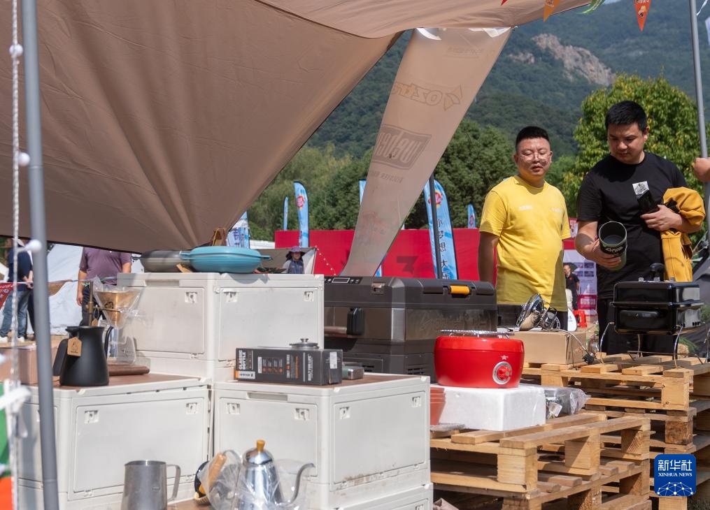 9月28日,參觀者在戶(hù)外運(yùn)動(dòng)裝備展上選購(gòu)露營(yíng)用品。