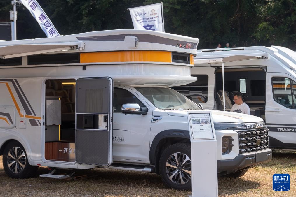 9月28日,參觀者在戶(hù)外運(yùn)動(dòng)裝備展上參觀房車(chē)。