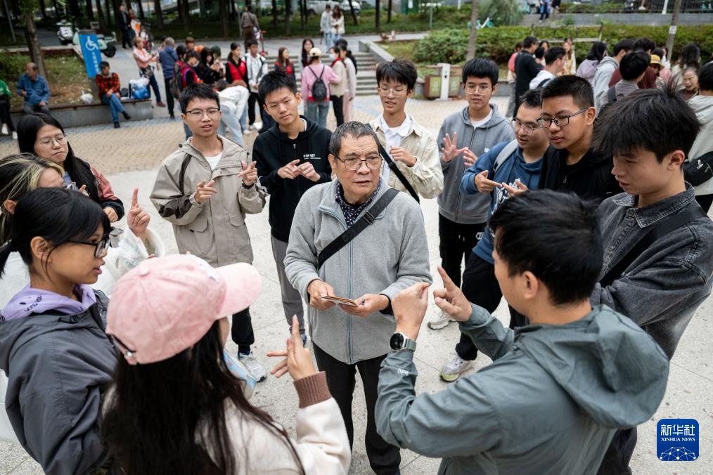 10月20日,金蟬子公益團隊部分成員在旺山公園手語園與其他手語愛好者一同學習手語。金蟬子公益團隊每周日會到旺山公園學習手語,并為聽障人士進行科普教育和發聲教學。