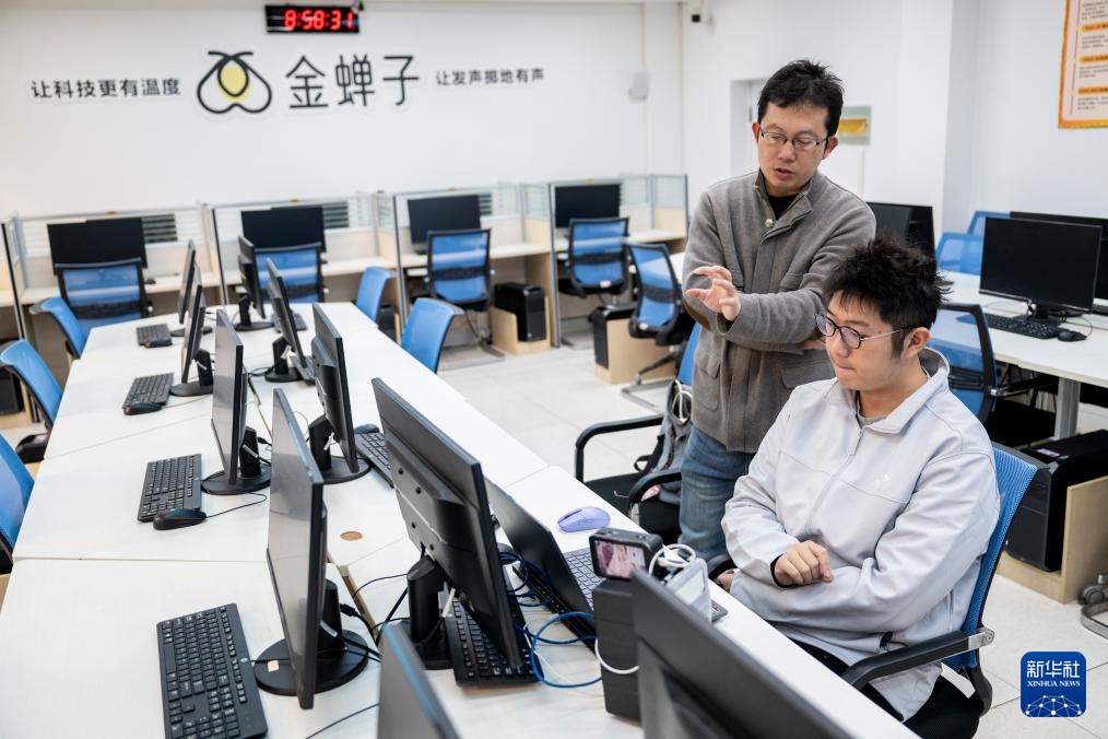 12月3日,金蟬子公益團隊成員在調試唇語輔助訓練系統。