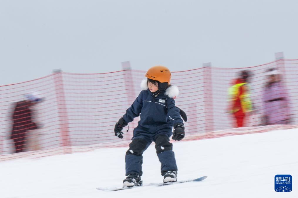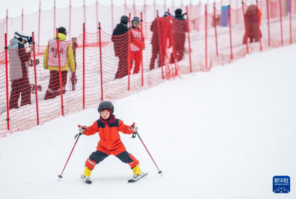 12月26日,一名小朋友在綠蔥坡滑雪場(chǎng)滑雪。