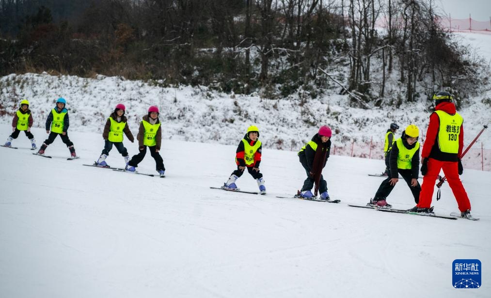 12月27日,小朋友們?cè)诰G蔥坡滑雪場(chǎng)學(xué)習(xí)滑雪。