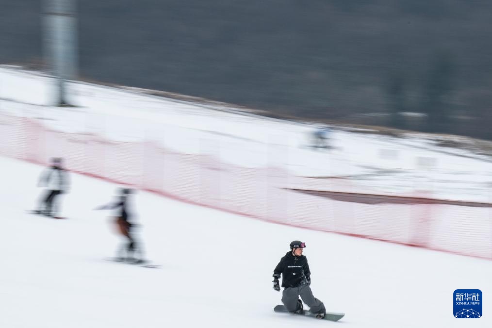12月26日,游客在綠蔥坡滑雪場(chǎng)滑雪。