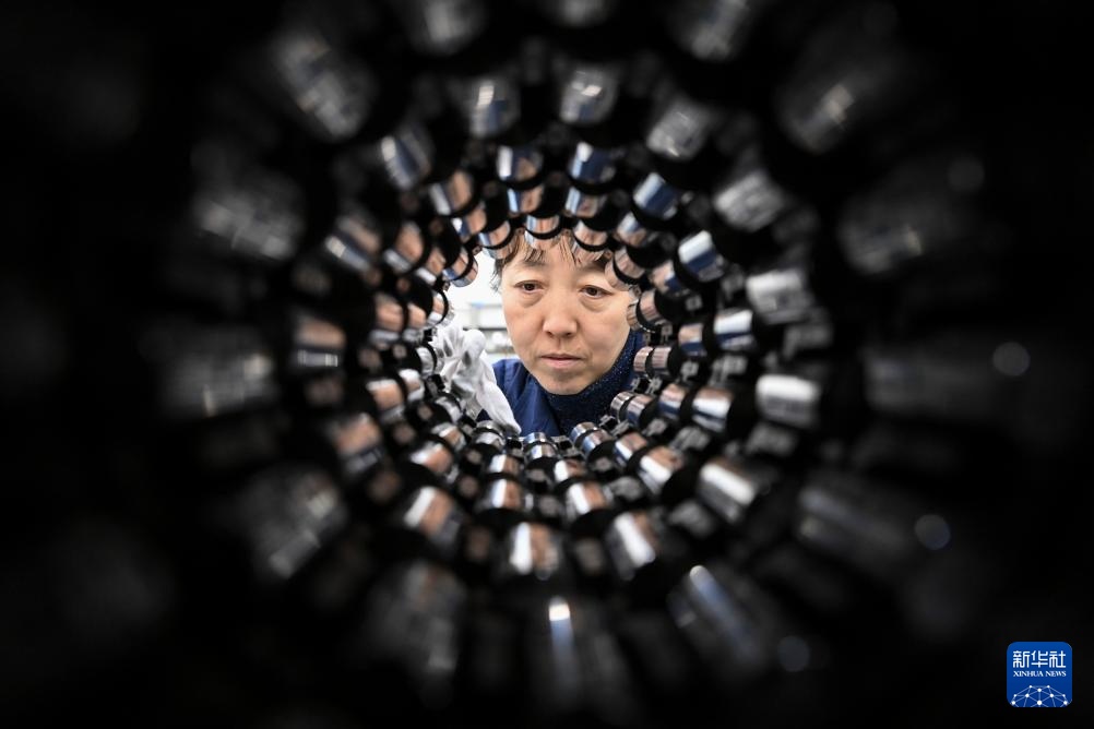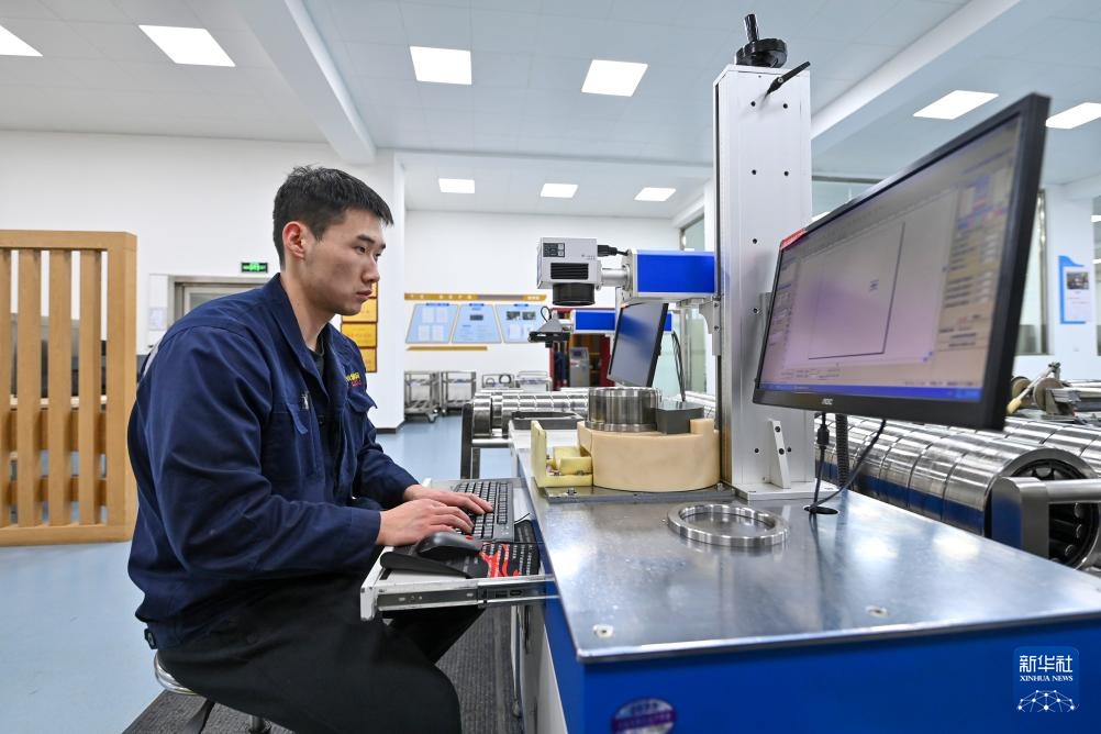 在中國鐵路太原局集團有限公司太原車輛段輪軸車間,軸承組車輛鉗工張明敏為軸承打碼,此舉相當于為軸承錄入“身份信息”,可記錄軸承編號、型號、制造年月等信息(1月9日攝)。