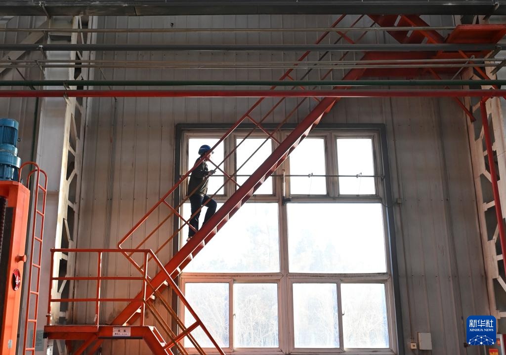 在中國鐵路太原局集團有限公司太原機務段太北檢修車間,天車司機王淑潔沿著扶梯向上攀爬(1月10日攝)。