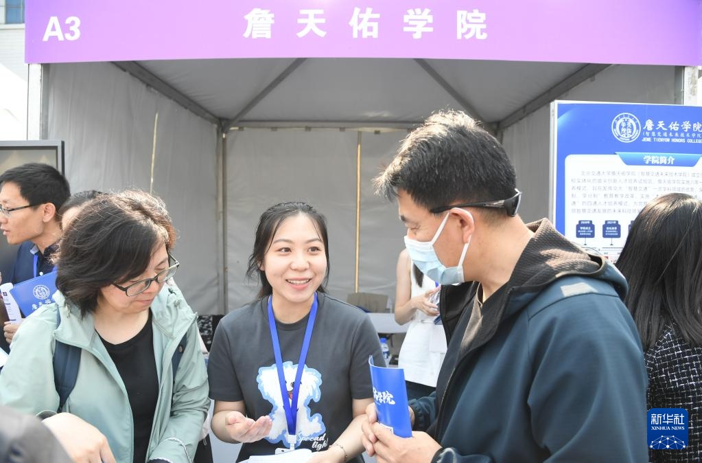 5月10日,家長(zhǎng)(前右)在北京交通大學(xué)2025年校園開放日暨高招咨詢會(huì)現(xiàn)場(chǎng)咨詢。