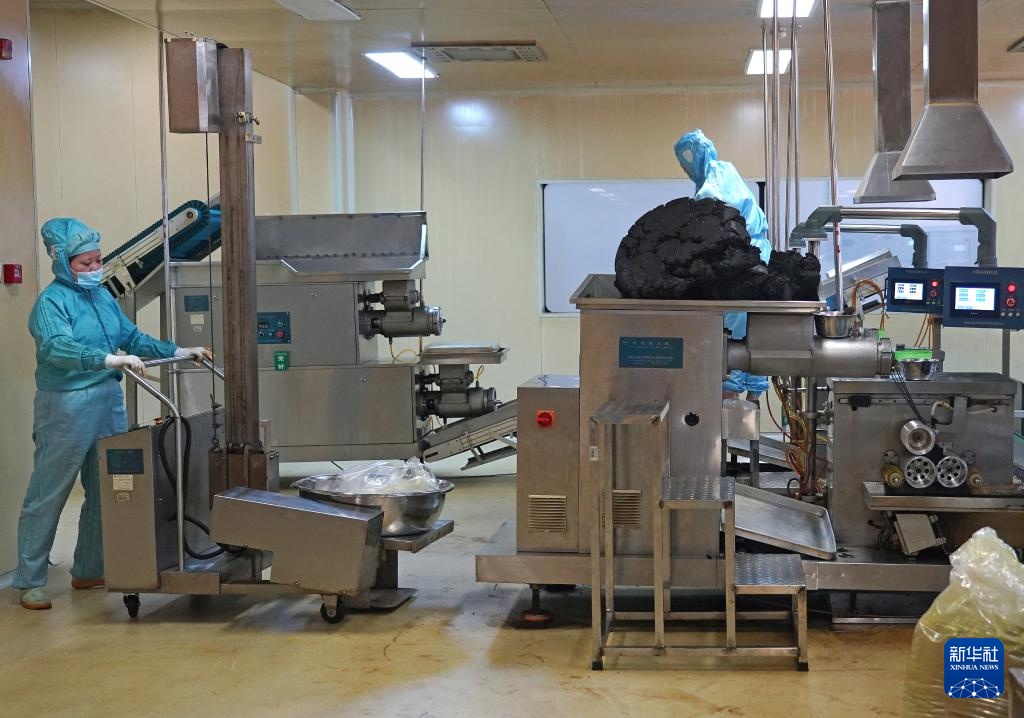 7月8日,工人在位于樟樹市的仁和集團的丸劑智慧車間加工中醫藥產品。