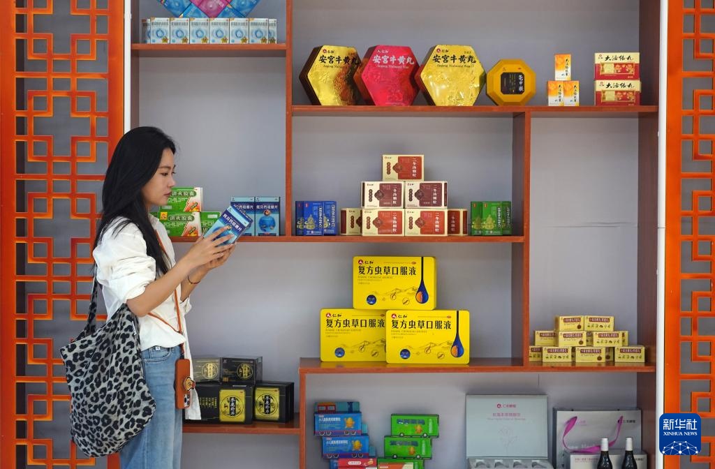 7月8日,游客在位于樟樹市的仁和集團展廳參觀中醫藥產品。