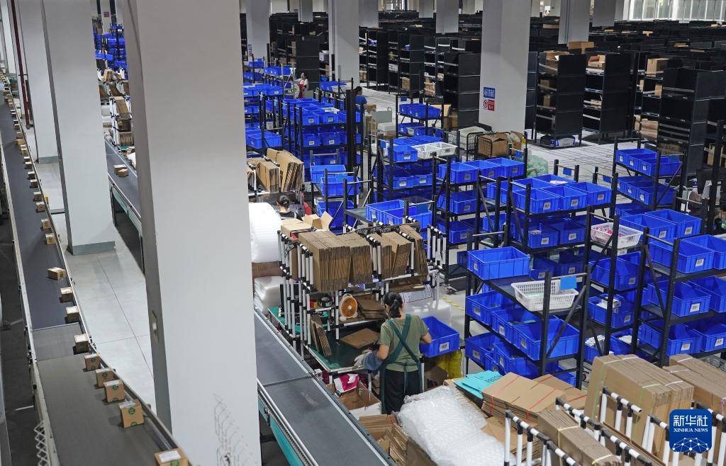 7月8日,工人在位于樟樹市的仁和集團智慧醫藥物流園分揀產品。