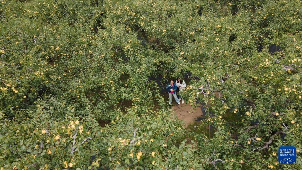 9月18日,游客在安徽省宿州市碭山縣一處梨園內(nèi)參觀游覽(無人機(jī)照片)。