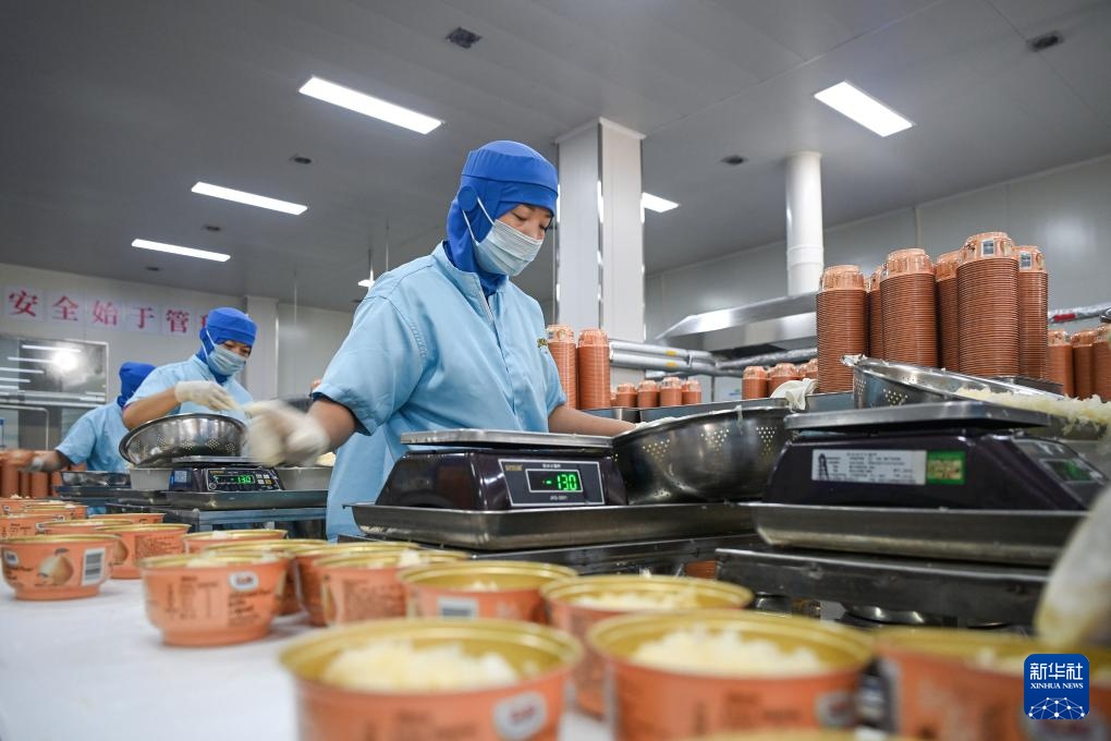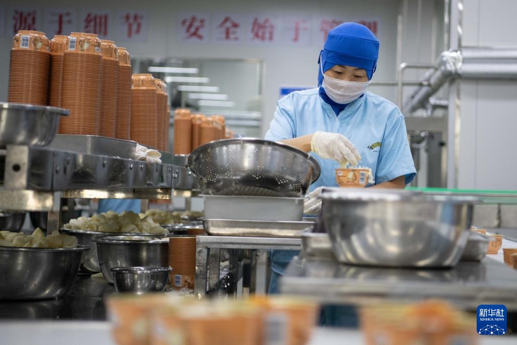 9月18日,在位于安徽省宿州市碭山縣的安徽龍潤堂生物科技有限公司內(nèi),工作人員在小吊梨湯生產(chǎn)車間作業(yè)。