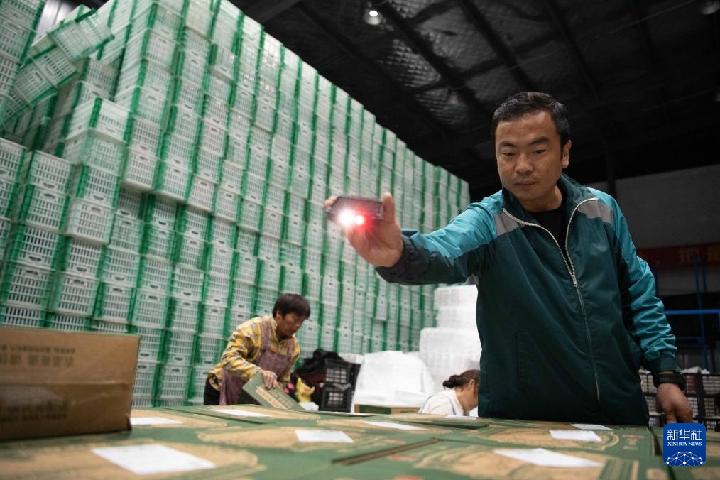9月19日,中國郵政集團(tuán)有限公司安徽省碭山縣分公司工作人員(前)將需要寄遞的酥梨掃描錄入系統(tǒng)。