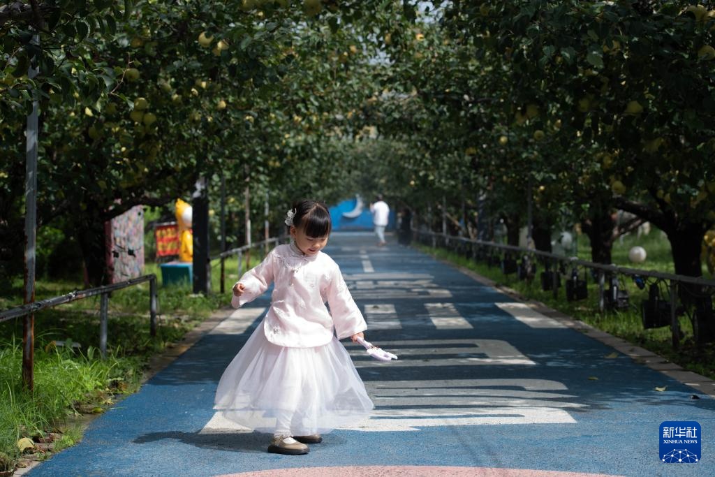 9月20日,小女孩在安徽省宿州市碭山縣一處酥梨文化主題樂園內(nèi)玩耍。