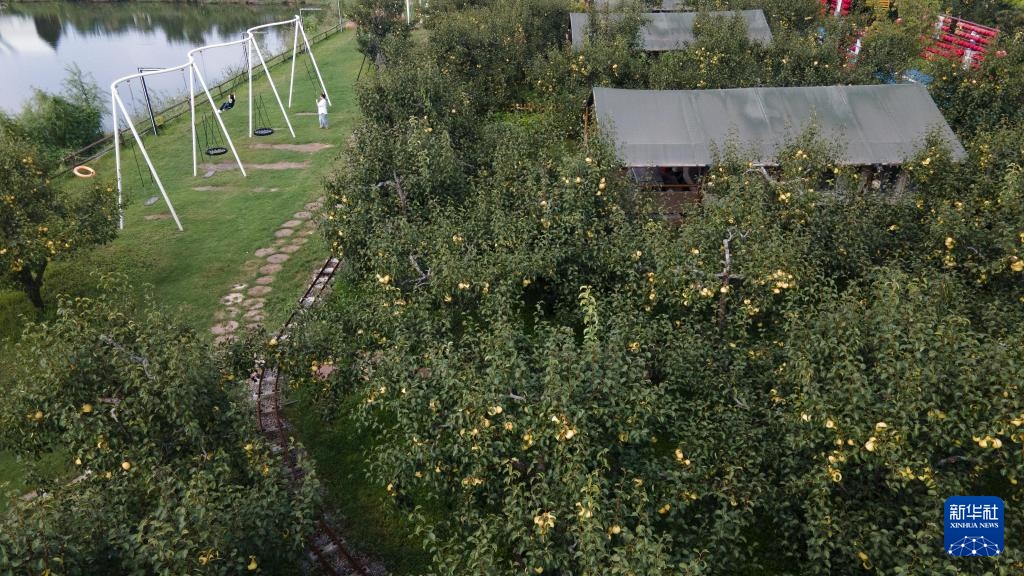 9月20日,在安徽省宿州市碭山縣一處酥梨文化主題樂園內(nèi),家長和孩子在休閑游玩(無人機(jī)照片)。