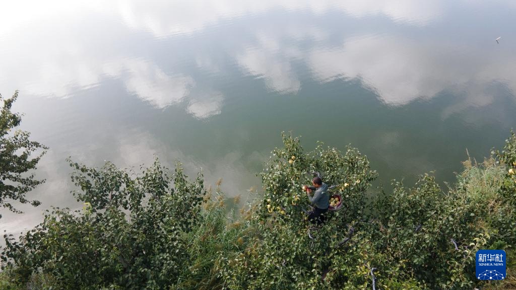 9月20日,在安徽省宿州市碭山縣一處梨園內(nèi),梨農(nóng)在采摘酥梨(無人機(jī)照片)。
