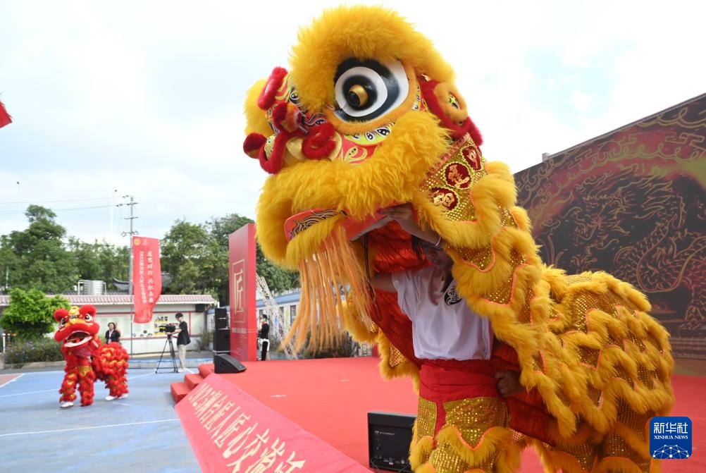 10月18日拍攝的2025閩臺匠人匠心交流活動開幕式上的舞獅表演。