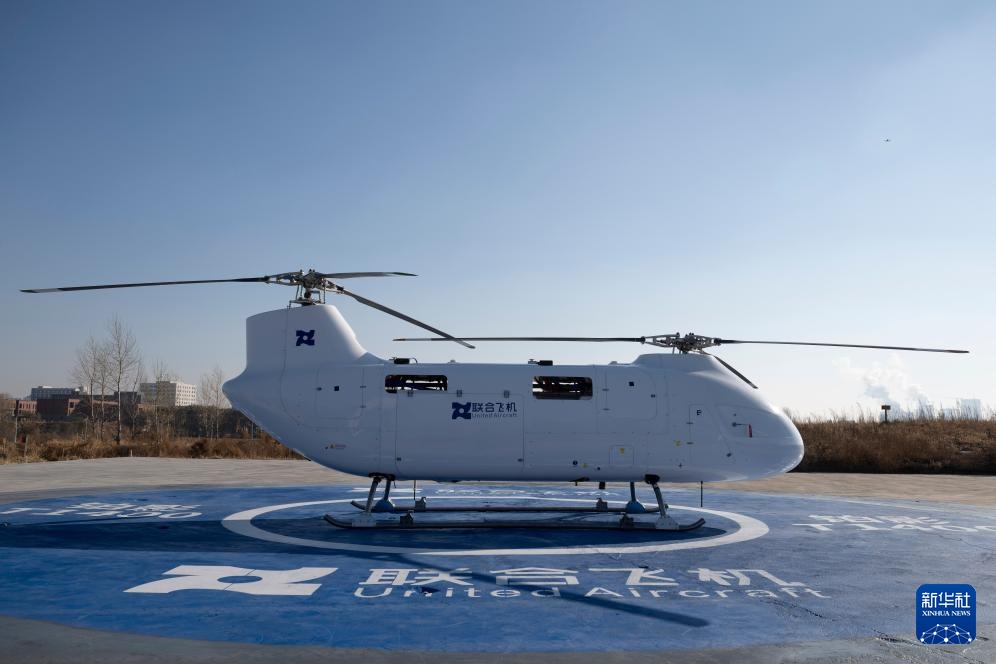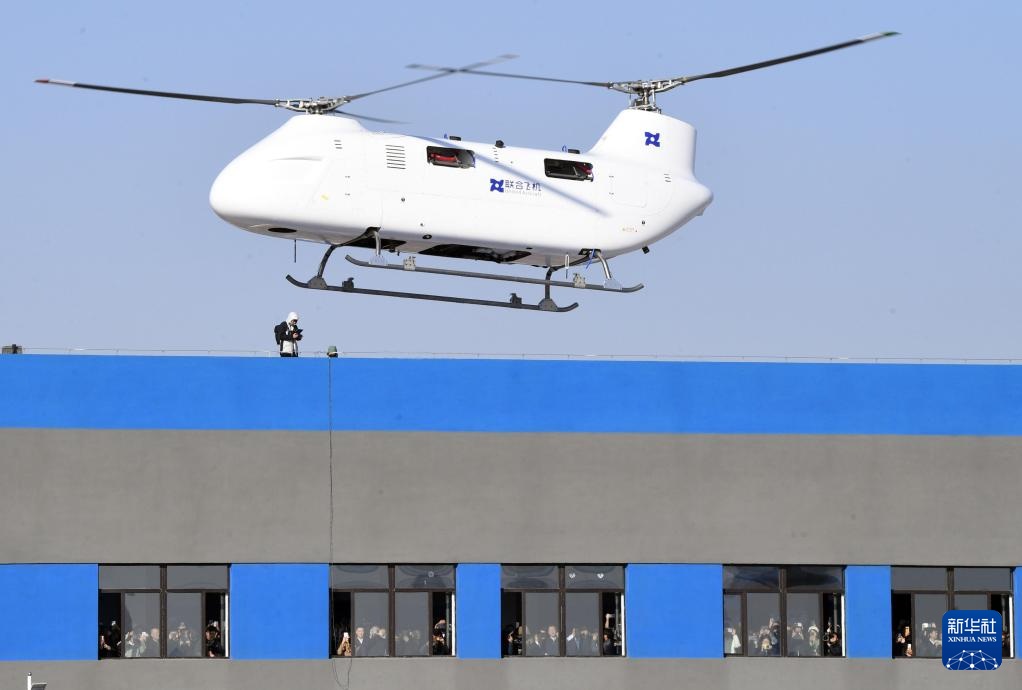 10月30日,在哈爾濱市平房區的哈爾濱聯合飛機科技有限公司,T1400無人直升機在飛行中。