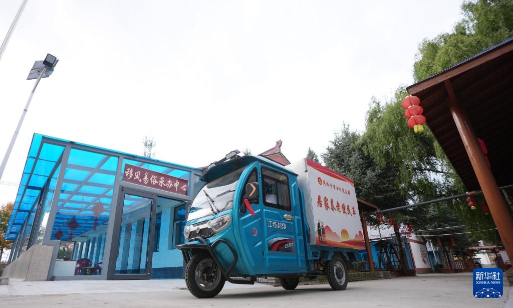 隆德縣鳳嶺鄉(xiāng)李士村村民駕駛居家養(yǎng)老便民車為行動不便老人送餐(10月26日攝)。