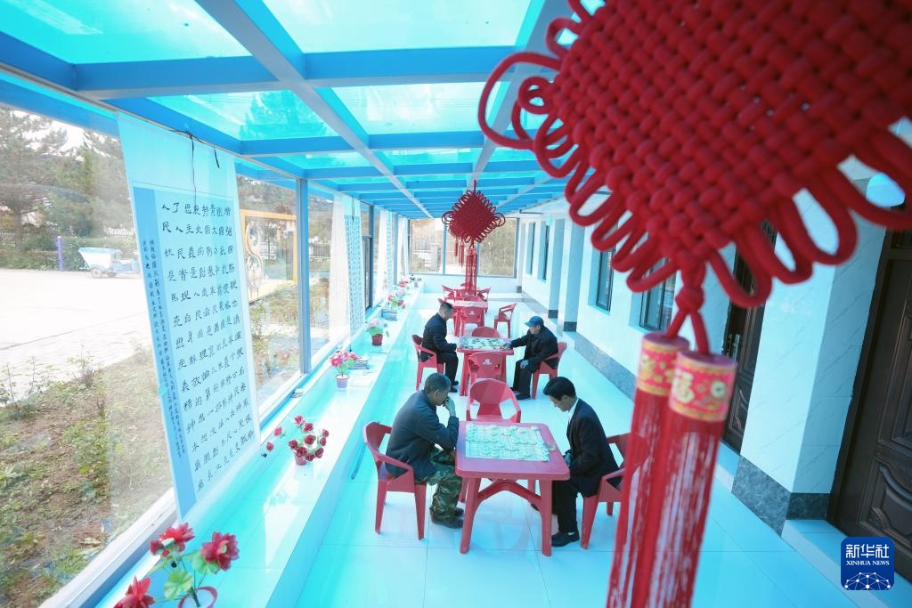 隆德縣鳳嶺鄉(xiāng)李士村村民在活動室下棋(10月26日攝)。