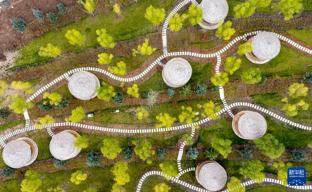 隆德縣城關(guān)鎮(zhèn)楊家店村星空民宿旅游區(qū)(無人機(jī)照片,10月26日攝)。