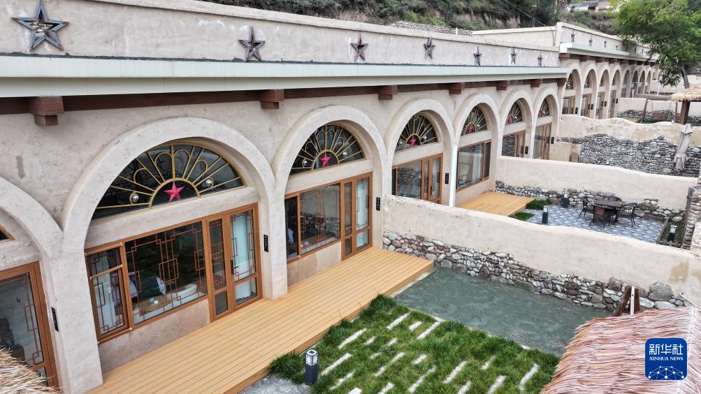 隆德縣城關(guān)鎮(zhèn)楊家店村窯洞民宿外景(無人機(jī)照片,10月26日攝)。