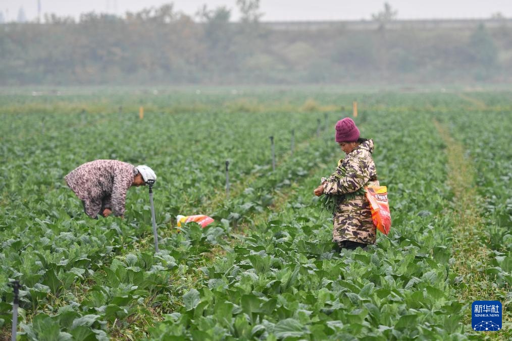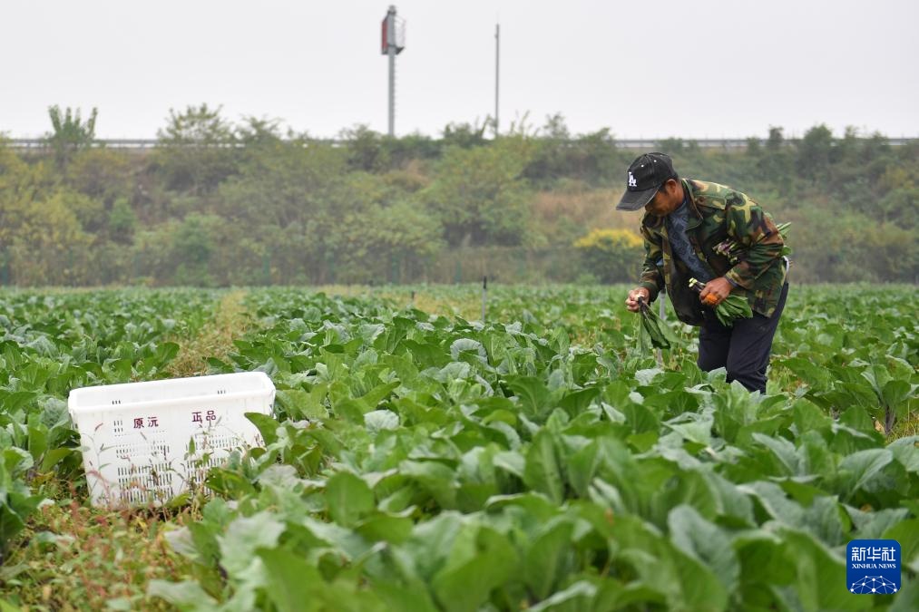 10月30日,菜農在沅江市草尾鎮樂園村蔬菜田里采收蔬菜。