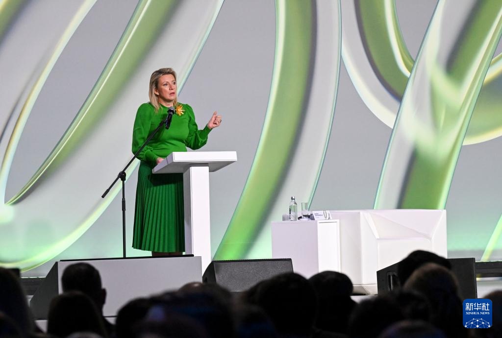 10月29日,在俄羅斯首都莫斯科,俄羅斯外交部發言人扎哈羅娃在“打假防騙對話3.0”國際論壇上講話。