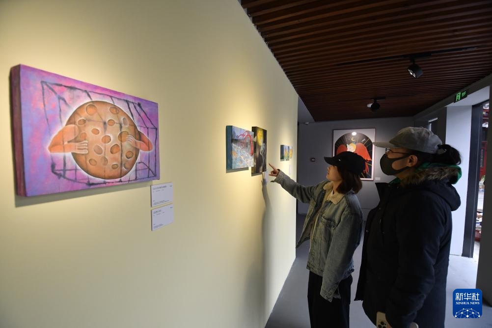 10月29日,游人在西總布胡同“時空集美術館”內參觀美術展覽。