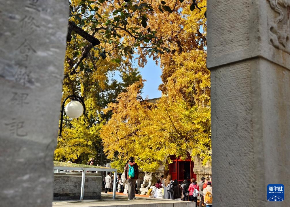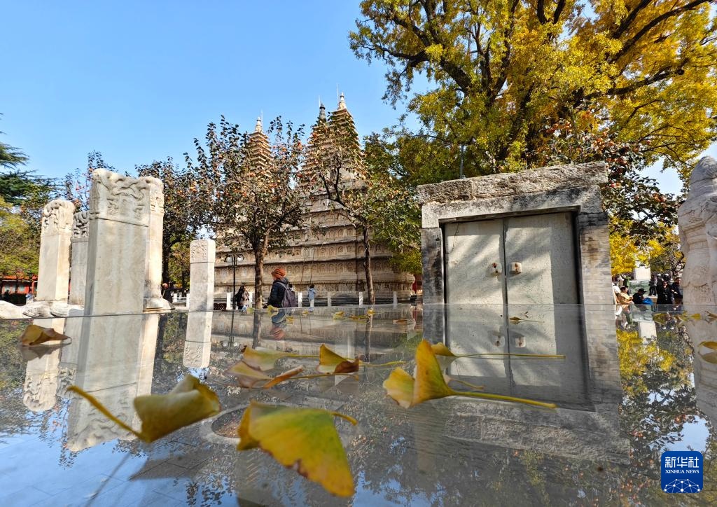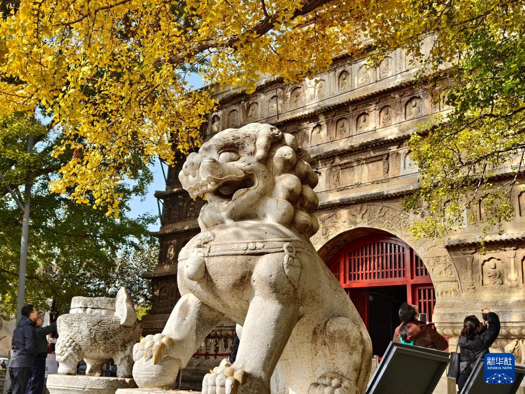 深秋時(shí)節(jié),北京石刻藝術(shù)博物館(也稱五塔寺)內(nèi)銀杏盡黃,吸引眾多市民、游客前來觀賞。