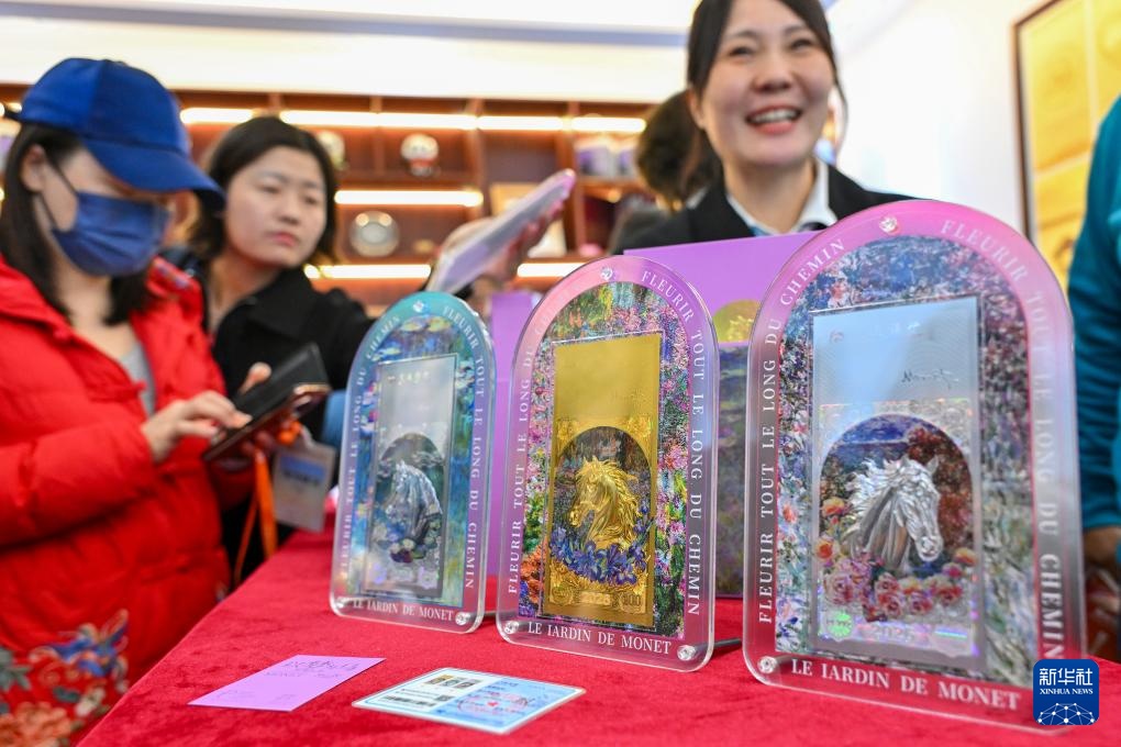 錢博會交通銀行展臺擺放的《以夢為馬 為愛而生》藝術(shù)金套裝(10月31日攝)。