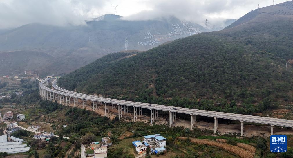 10月31日在云南省曲靖市會澤縣拍攝的會巧高速公路(無人機照片)。