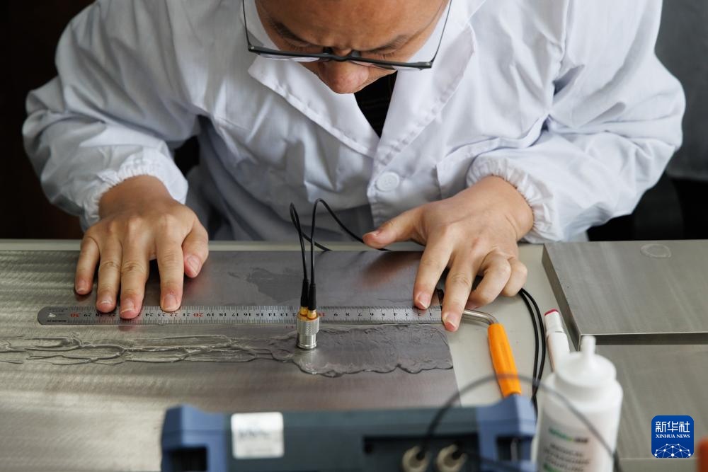 10月23日,在位于中國科學(xué)院上海應(yīng)用物理研究所嘉定園區(qū)的無損檢測實驗室,科研人員在觀察用于建設(shè)液態(tài)燃料釷基熔鹽實驗堆的合金材料的焊接質(zhì)量。