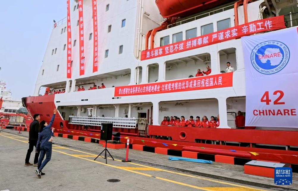 11月1日,送行的親朋好友與船上的科考隊員揮手告別。