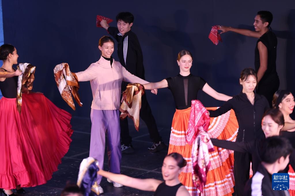 當日,在墨西哥首都墨西哥城,中央芭蕾舞團為墨西哥兩所舞蹈學校學生教授大師課,并學習墨西哥當地舞蹈。