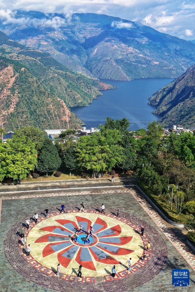10月31日,小灣東鎮(zhèn)居民在瀾滄江畔的移民廣場休閑(無人機(jī)照片)。