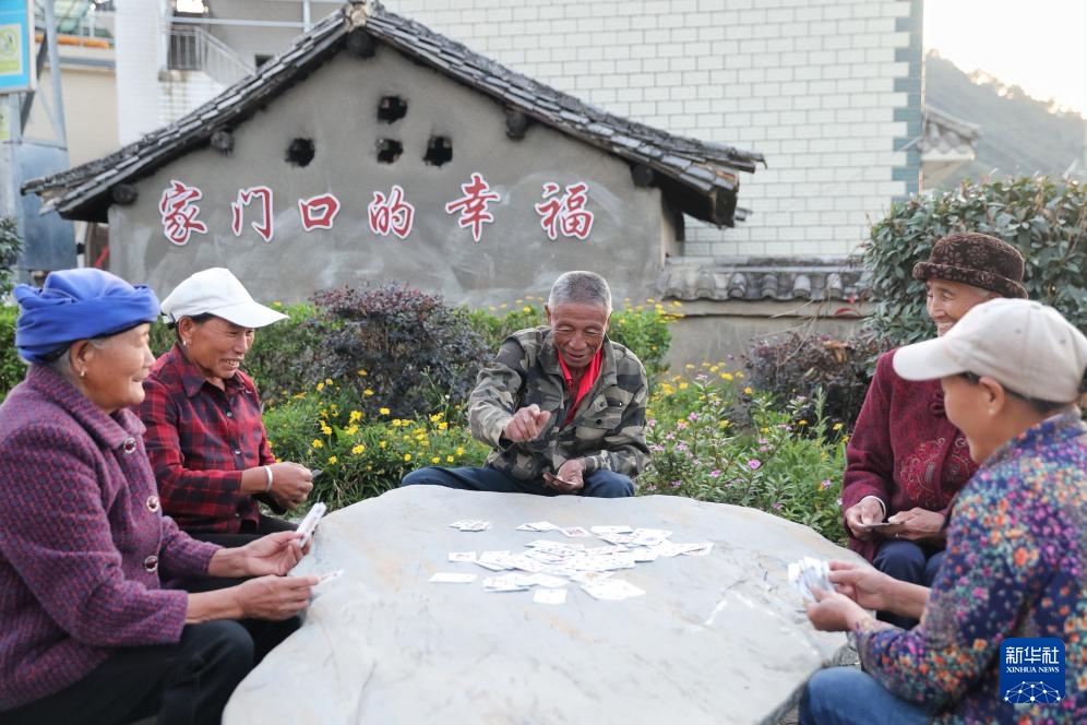 10月30日,小灣東鎮(zhèn)居民在新建的口袋公園內(nèi)休閑。