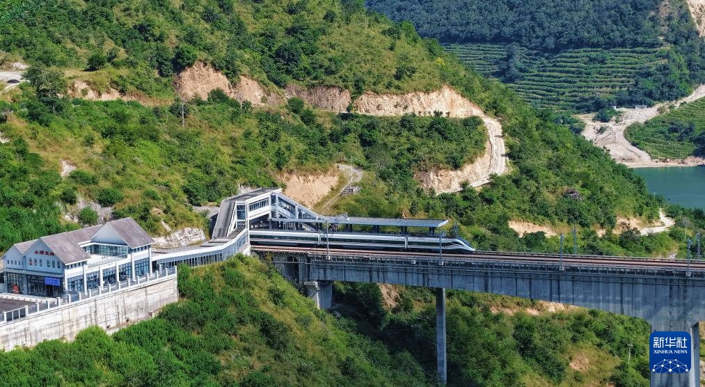 10月30日,一列動車組列車經(jīng)過小灣東站(無人機(jī)照片)。