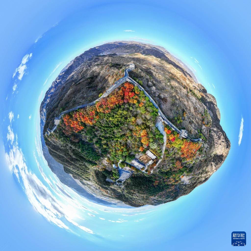 11月1日拍攝的黃崖關長城秋景(無人機全景照片)。