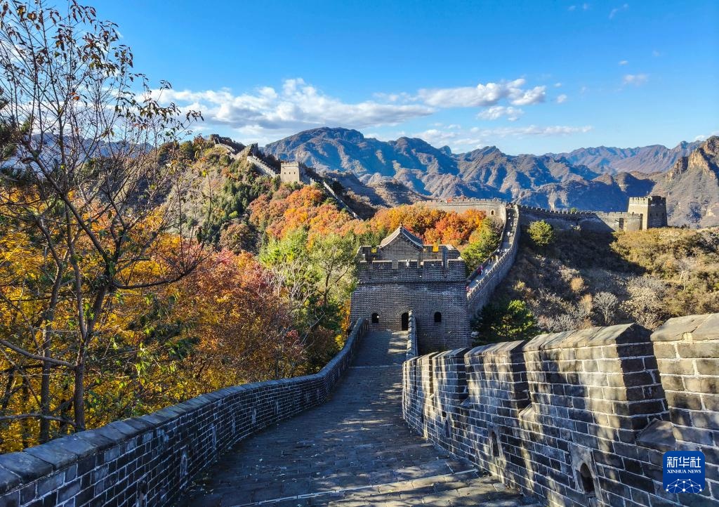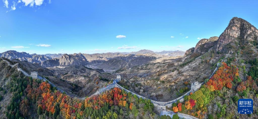 晚秋時節,位于天津市薊州區的黃崖關長城,山巒間的彩葉層層疊疊、絢爛繽紛,將濃烈的秋意潑灑在長城內外。