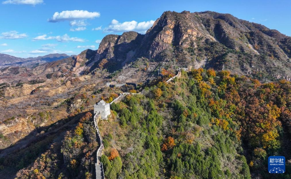 11月1日拍攝的黃崖關長城秋景(無人機照片)。