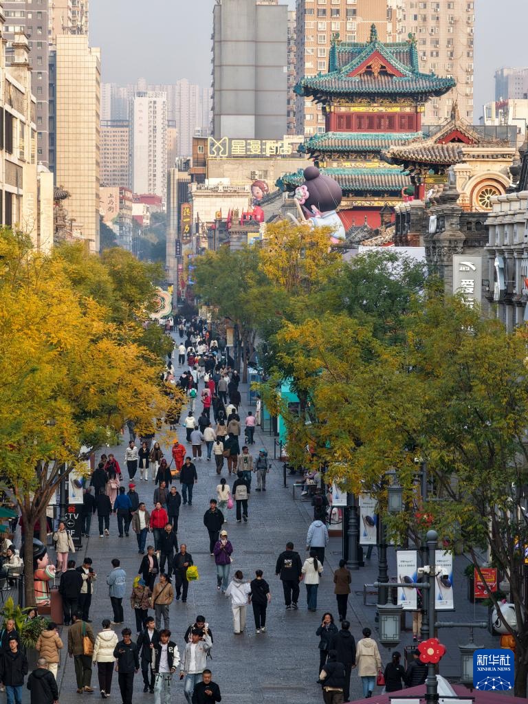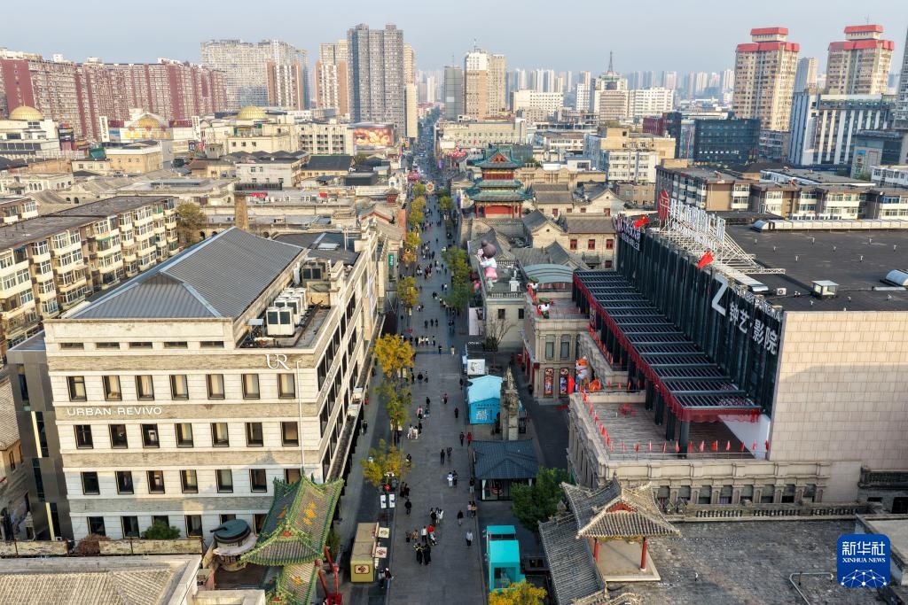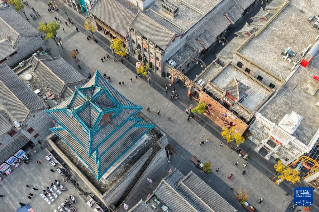 游客在鐘樓街行走(無人機照片,10月29日攝)。