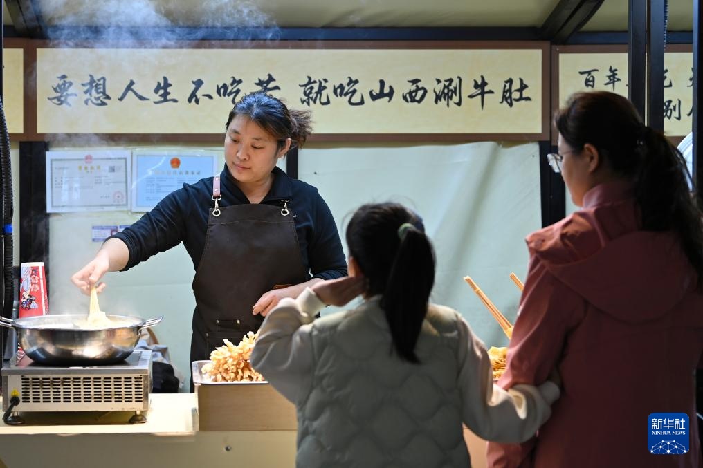 鐘樓街內的一家商戶在制作美食(11月1日攝)。